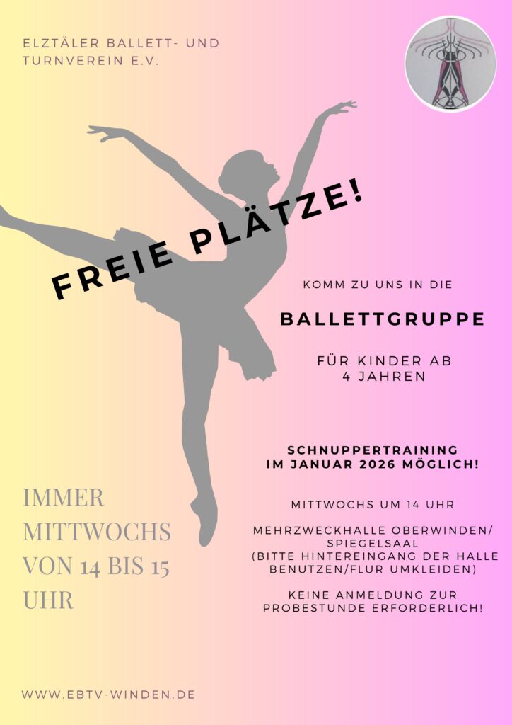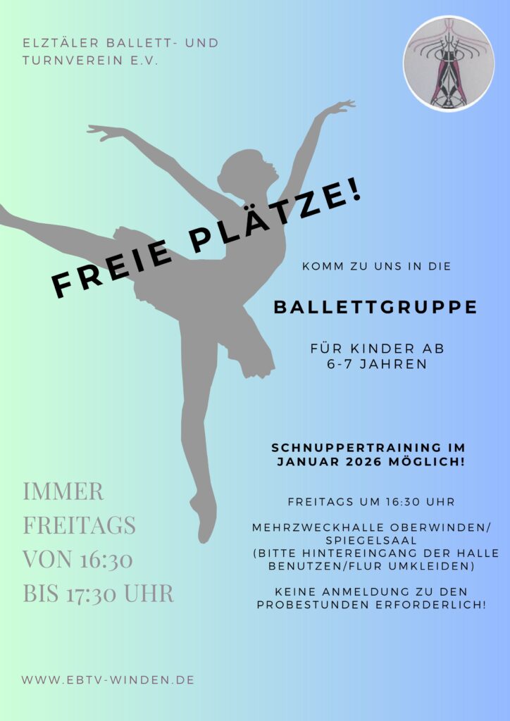Wir nehmen ab sofort nochmals KInder im Alter ab 4 Jahren und 6 Jahren in die Abteilung Ballett auf. Kommt einfach vorbei und probiert es aus.